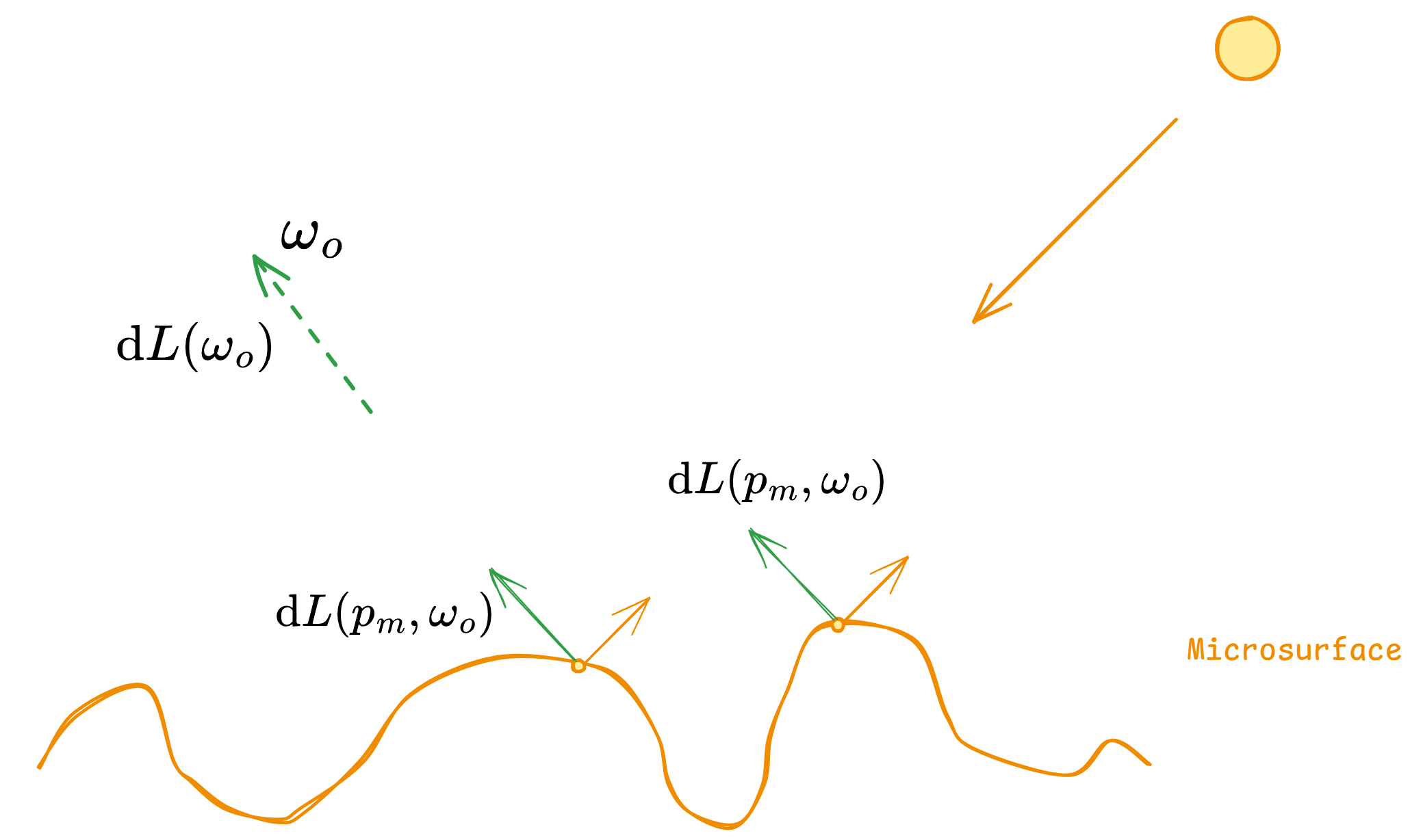 Recall that for every point on the microsurface, we have the classic rendering equation (without self-emitting):